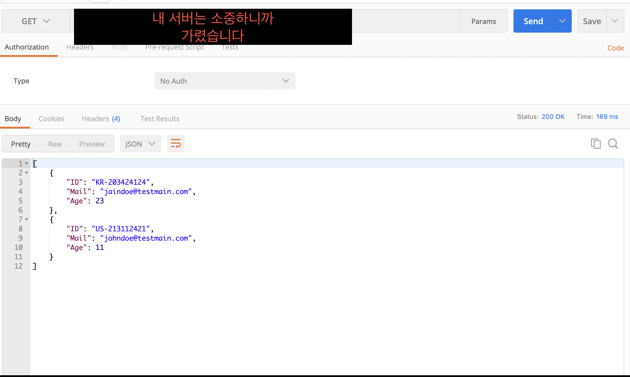 이쯤에서 Postman도 한번 사용해봅시다. 익숙해지면 편하니까요.