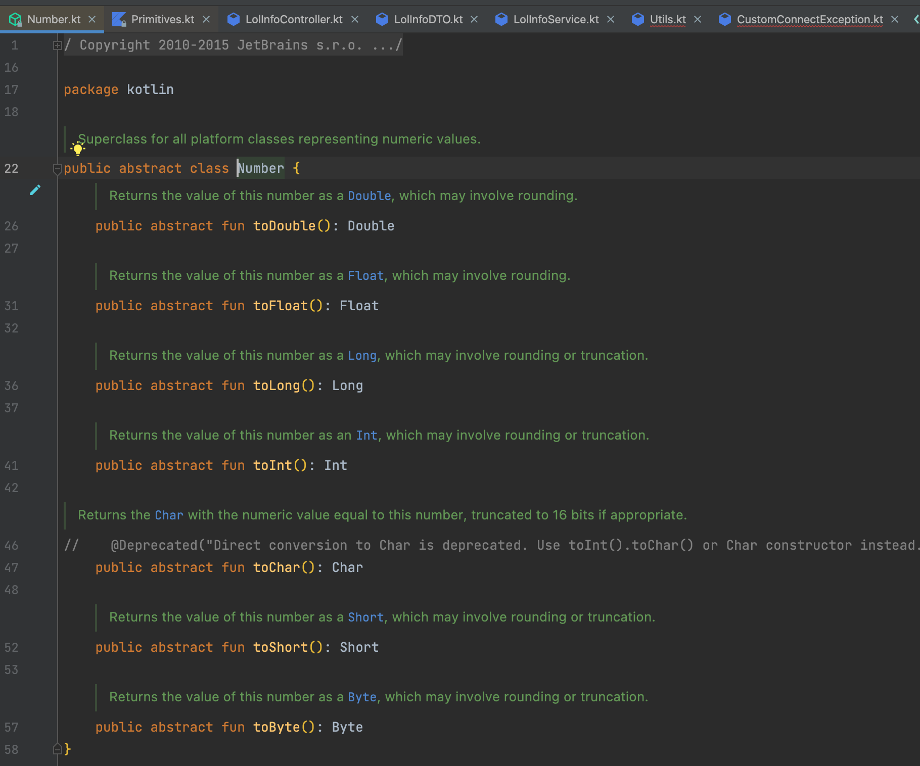코틀린에서 숫자 관련된 모든 데이터 타입들은 Number클래스를 상속받은 클래스들이였다.