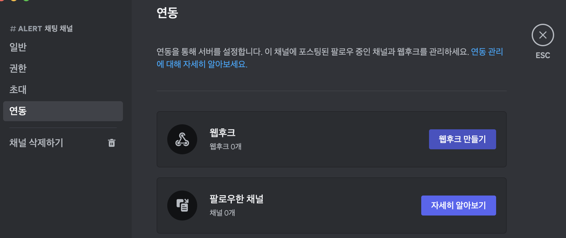 slack webhook연동에 대한 글을 작성하다 discord에 대한 연동도 작성하면 재미있을 것 같아서 빠르게 메시지 한정으로 작성해 봅니다.