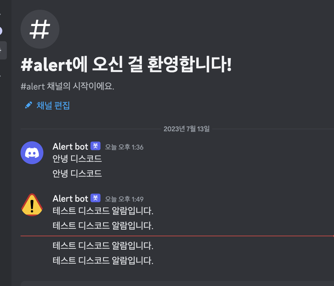 boolean result = msgService.sendMsg("테스트 디스코드 알람입니다.");