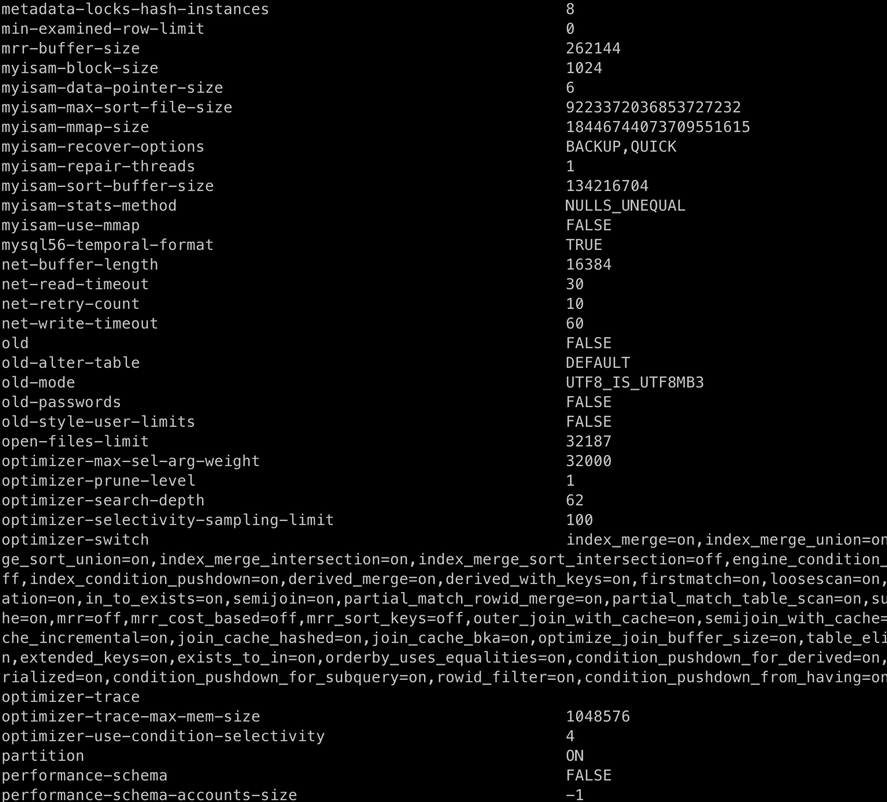 # http://dev.mysql.com/doc/mysql/en/server-system-variables.html