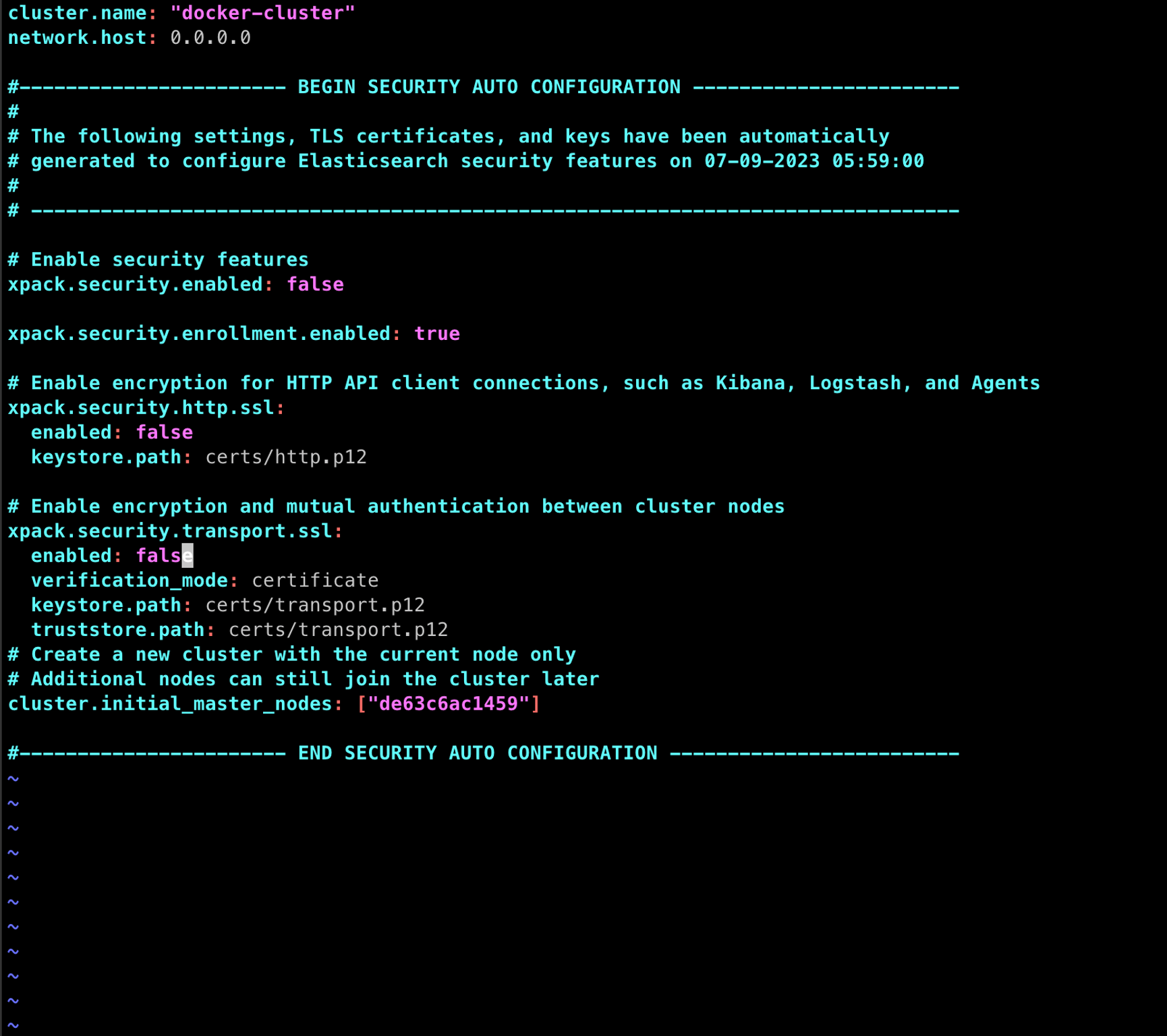 elasticsearch.yml 안에 있는 security관련 설정을 다 disable처리해 주었다.