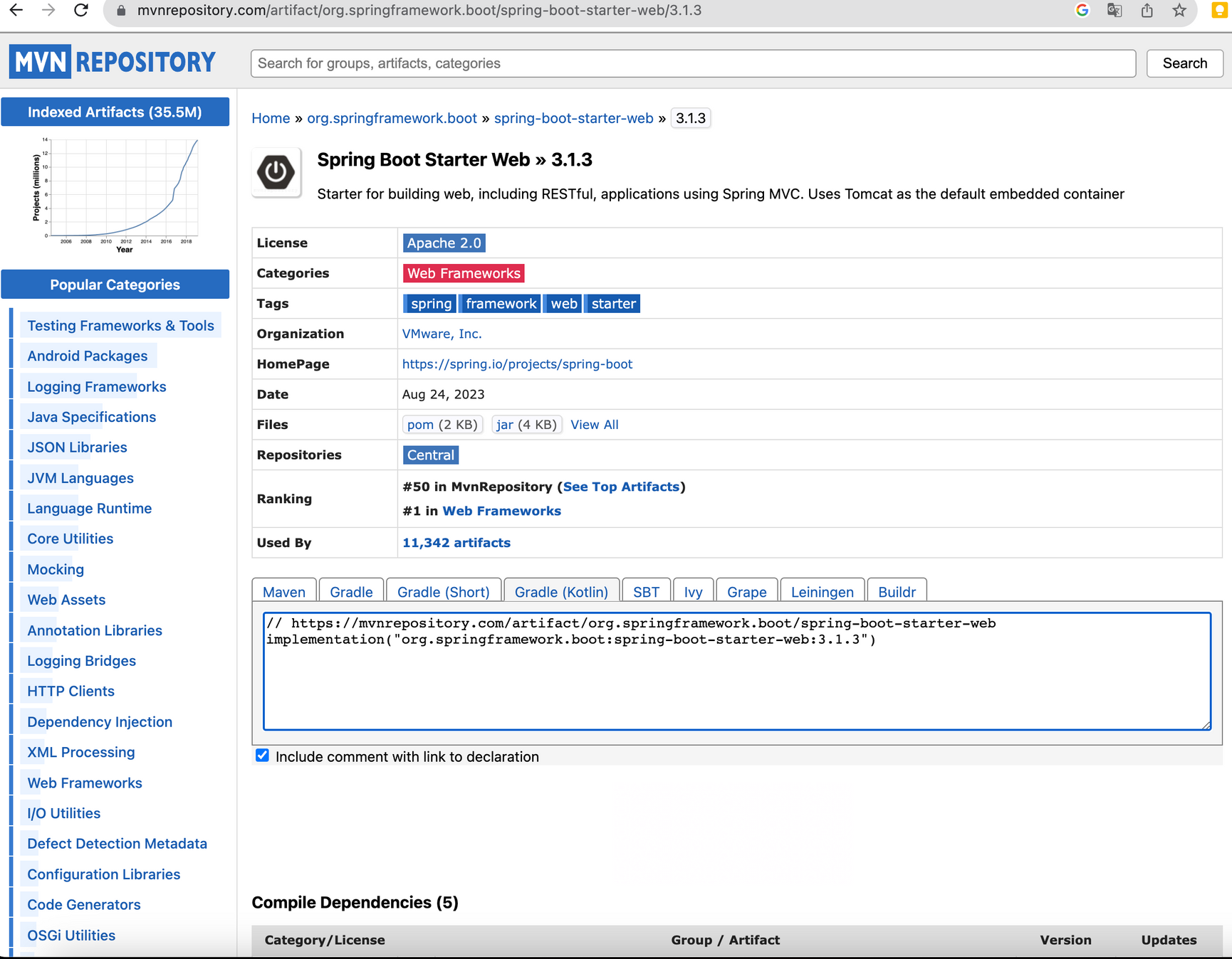 implementation("org.springframework.boot:spring-boot-starter-web:3.1.3")