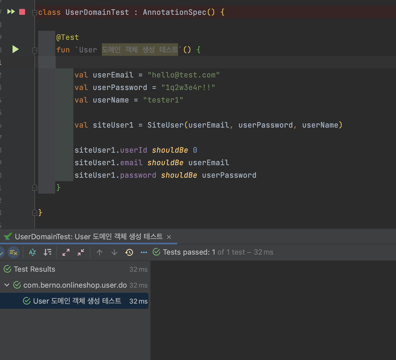 val siteUser1 = SiteUser(user1Email, user1Password, user1Name)