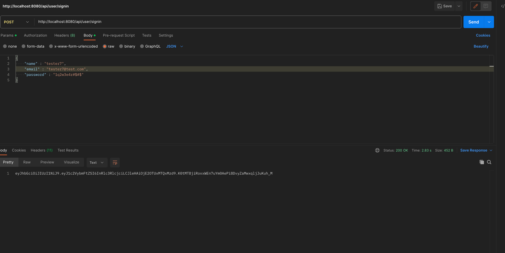 이렇게 하면 signin으로 요청 시 토큰이 반환될 것이다.