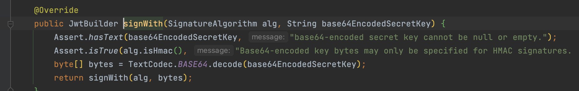 .signWith(signatureAlgorithm, JWT_SECRET)