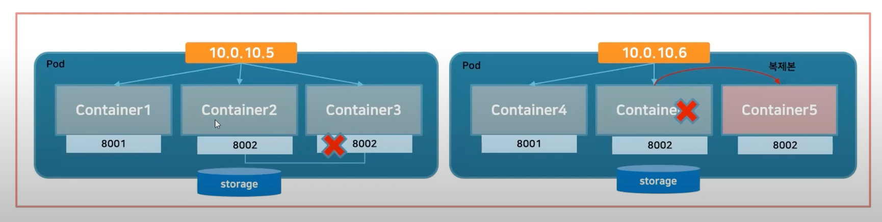 - 일반적으로 밀접하게 연결된 Application이 올라간 컨테이너들을 Pod로 묶어서 배포