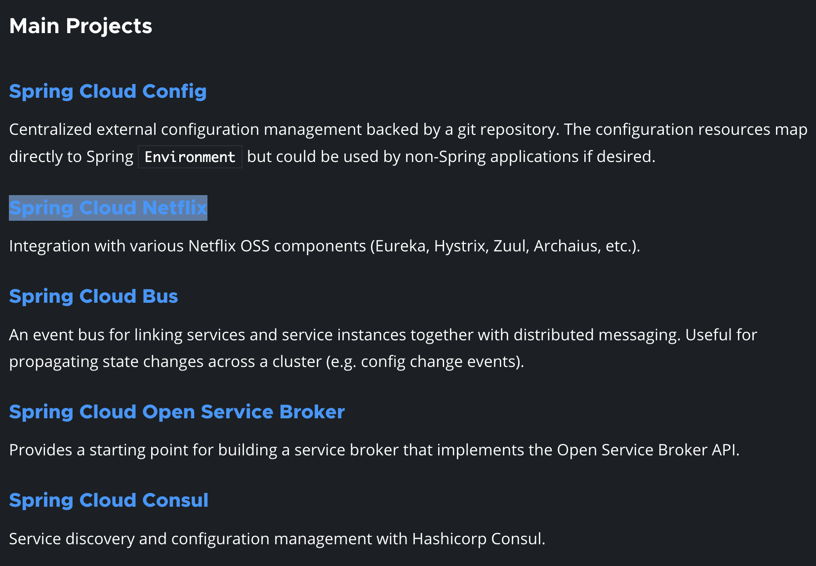 Spring Cloud의 프로젝트 안에 다양한 프로젝트들이 존재하는데 그중 Spring Cloud Netflix가 존재한다.