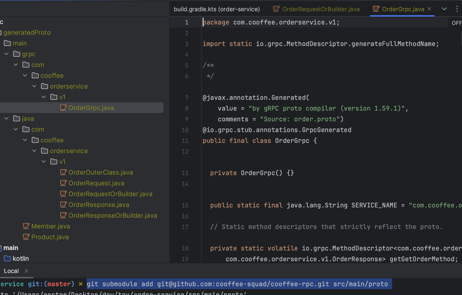 토이 프로젝트를 진행하면서 gRPC를 사용하려는데 rpc파일들은 submodule로 관리를 하려고 한다. 일단 붙이긴 해서 여기서 더 효율적인 gradle내용과 이쁘게 하기 위해 수정은 해야겠지만 기록 및 공유하기 위함
