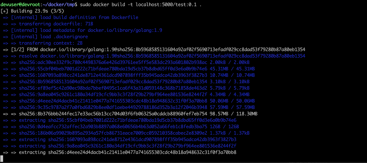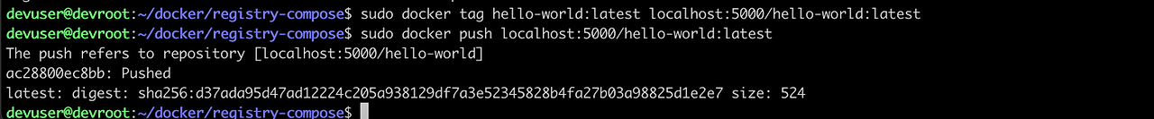 그러면 docker build를 하면서 localhost:5000/hello-world:latest 와 같은 형식으로 만든 후 push를 하면 된다.