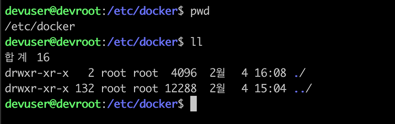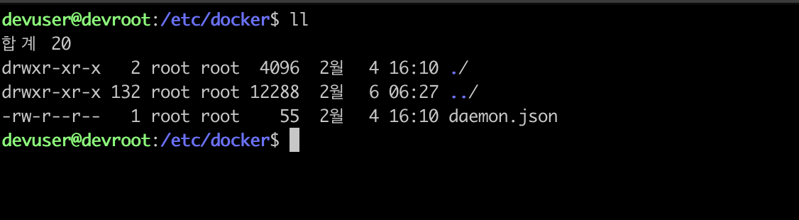 그리고 daemon.json파일이 필요한데 /etc/docker에 없을 수 있다. 없다면 만들어주자.