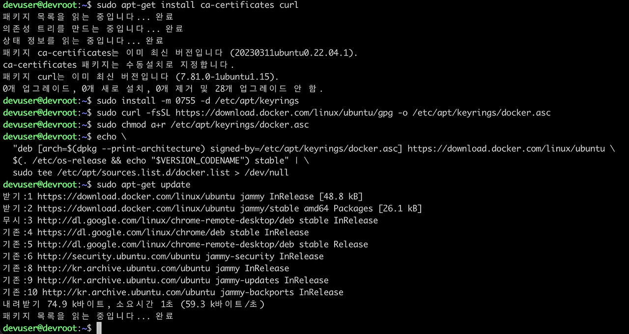 sudo apt-get install docker-ce docker-ce-cli containerd.io docker-buildx-plugin docker-compose-plugin