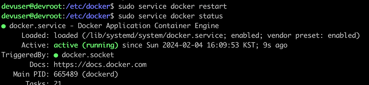 그리고 docker서비스를 재시작하자.