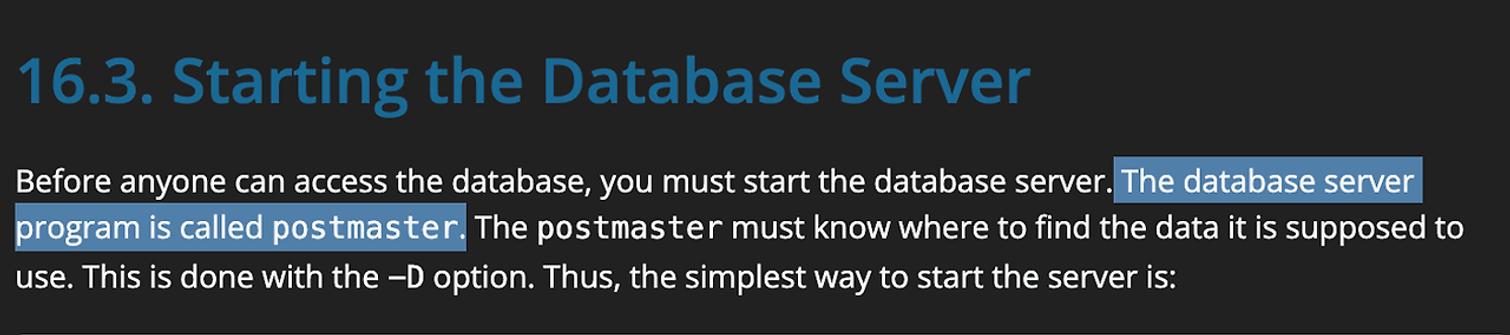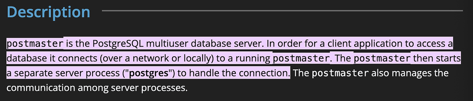 - 우리가 흔히 Postgresql을 켠다고 하는데 그 데이터베이스 서버는 postmaster라고 부른다고 한다