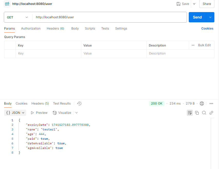 { "expiryDate": 1741527664.202672300, "name": "tester1", "age": 444, "paid": true, "ageAvailable": true, "dateAvailable": true }서버 : 어 진짜네 아니 근데 나 예전부터 이렇게 해놨음. 다른 거 한 거 없음