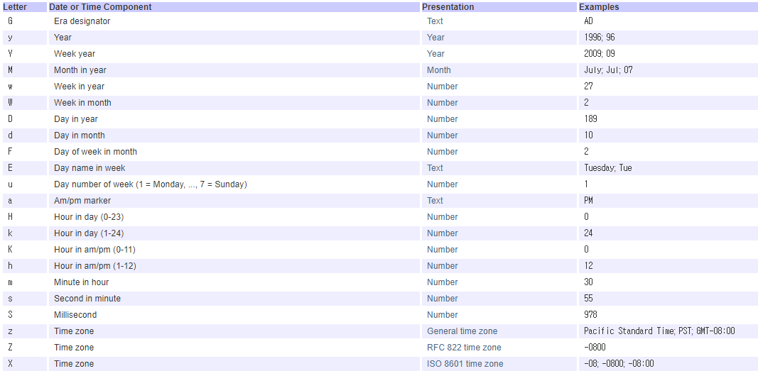 SimpleDateFormat의 생성자 파라미터에 원하는 포맷을 넣어준다.