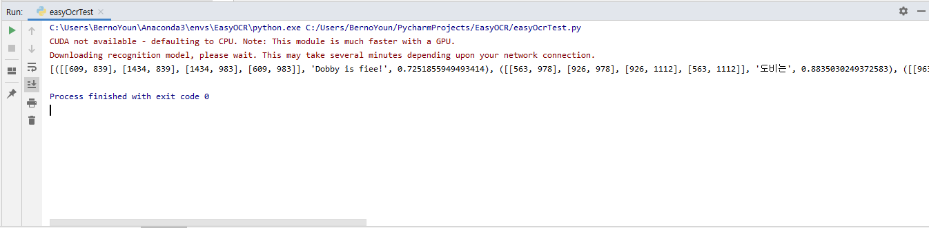 다음 글에서는 제가 EasyOCR을 어떻게 사용했는지 코드와 함께 작성하도록 하겠습니다.