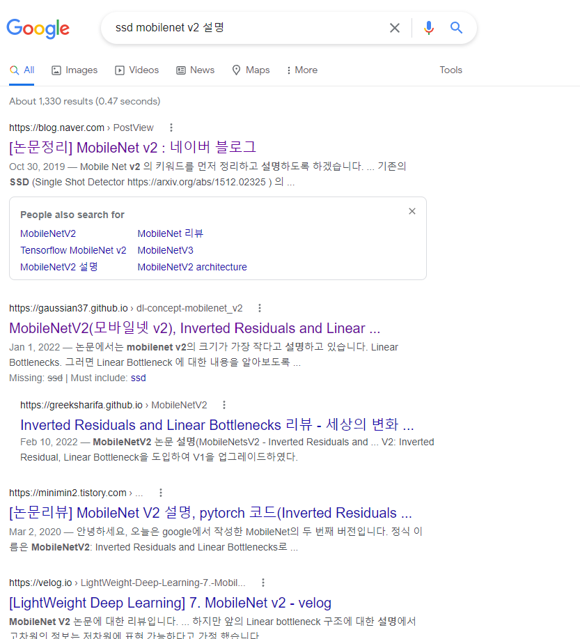 그럼 결국 SSD MobileNet만 검색해봐도 됩니다.
